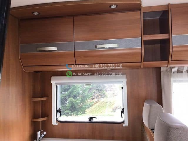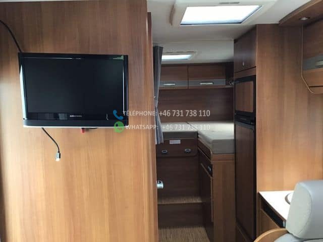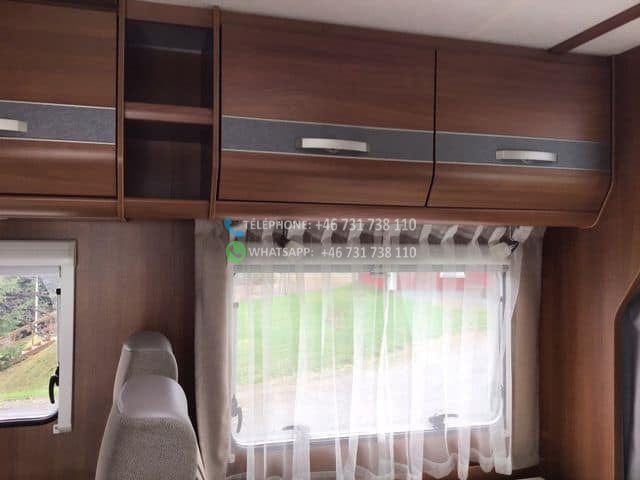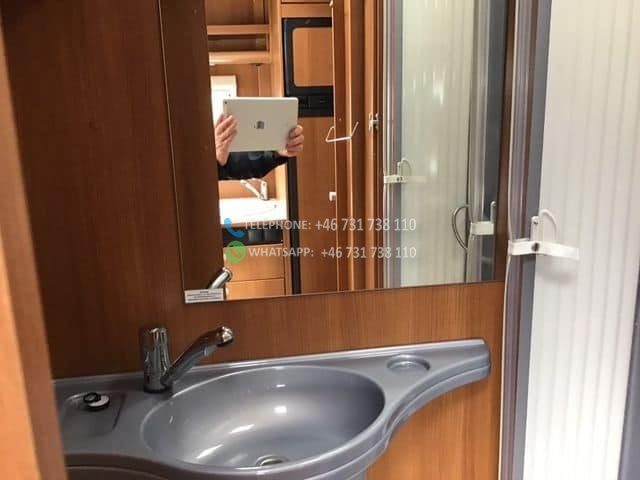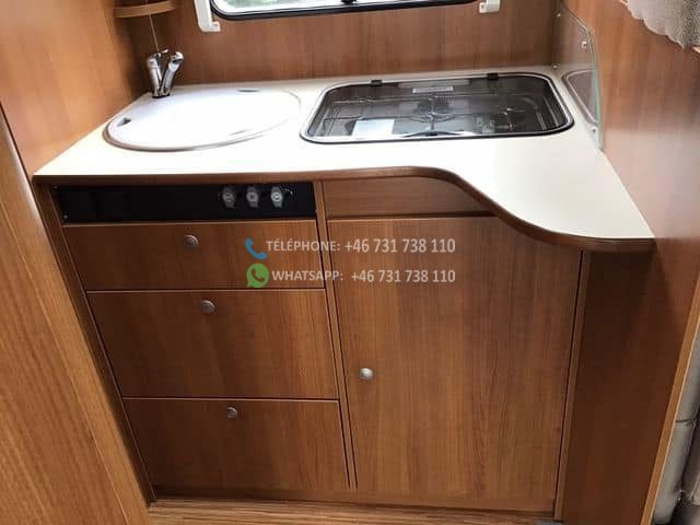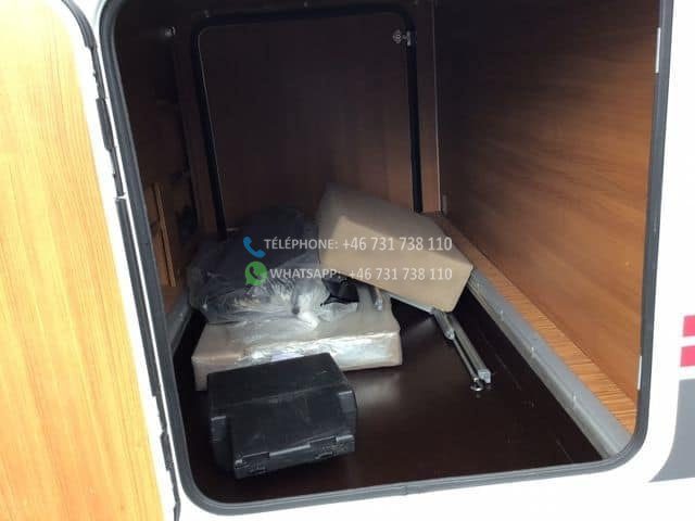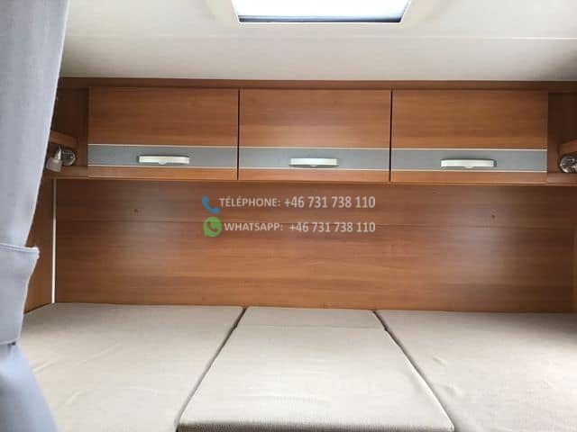 Four placé au dessus du frigo. Salle de douche et WC séparés. 2 lits simples, transformables en un grand lit double. Prises de courant près des lits (voir photo) Grands placards sous les lits et 1 longue armoire. Le salon peut être transformé en lit.