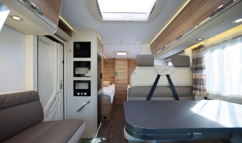 L’Adria Coral S 670 SLT propose un intérieur lumineux et contemporain avec des finitions soignées. Le salon avant est spacieux, combinant banquette, sièges pivotants et grande table pour créer un véritable espace de vie convivial.