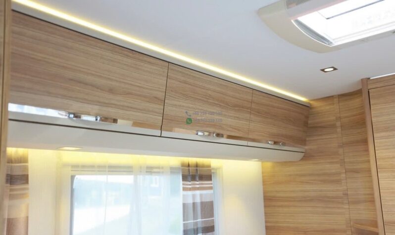 Grande soute garage accessible sous les lits arrière pour vélos, mobilier de camping et équipements de loisirs. Toit équipé de panneaux solaires pour favoriser l’autonomie hors branchement. Nombreux lanterneaux et baies pour la lumière naturelle et la ventilation.