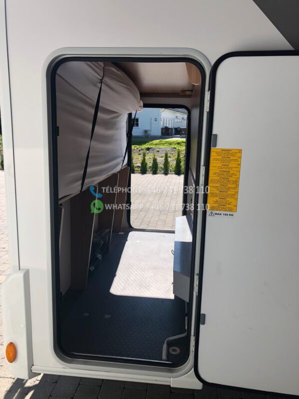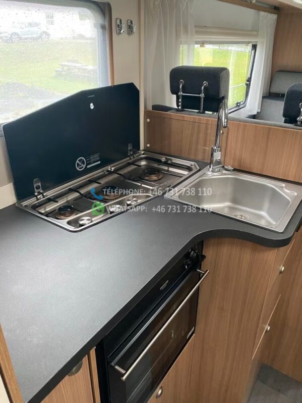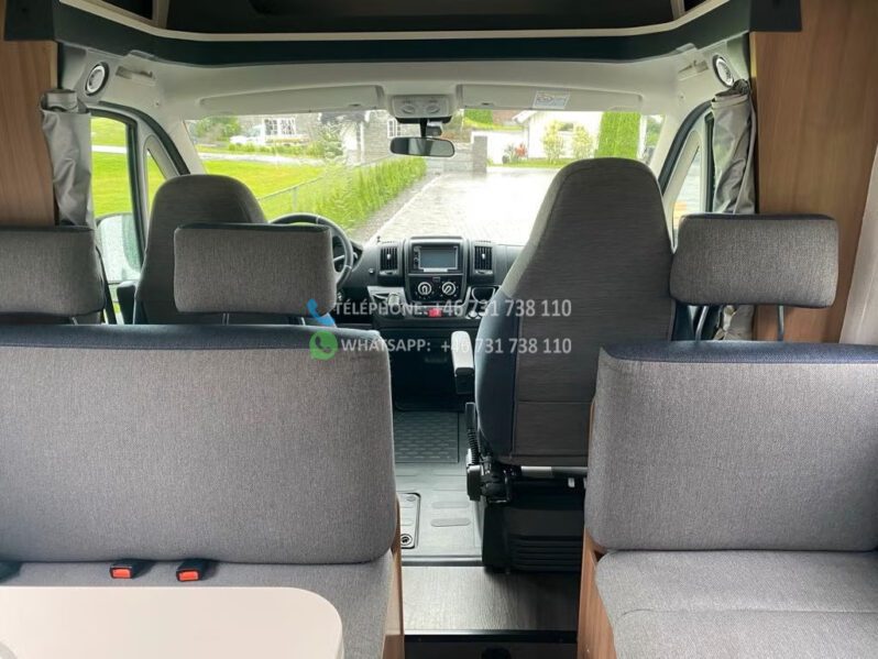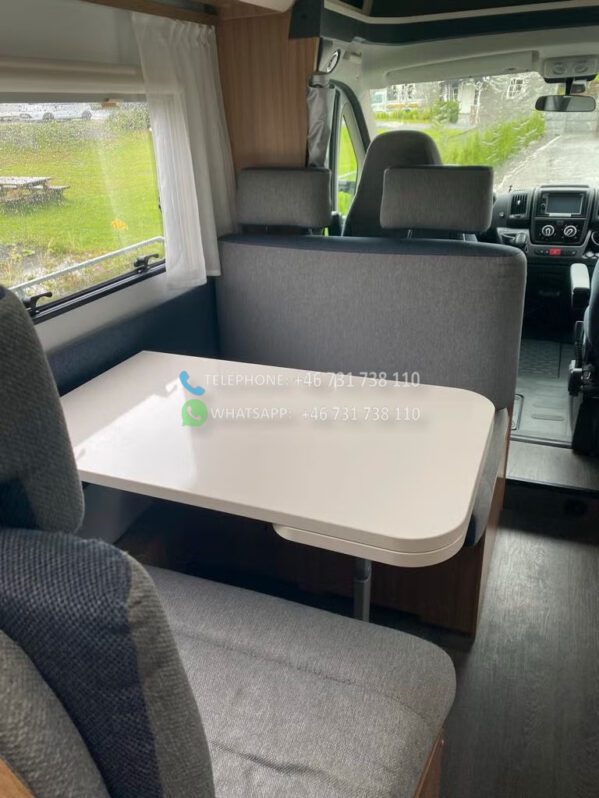 Camping-car très agréable et facile à conduire, homologué pour 6 personnes. Il dispose d’un lit superposé à l’arrière, d’un lit pavillon et de la possibilité de transformer un canapé. Il comprend deux coins salon avec tables, pour 2 et 4 personnes respectivement.
