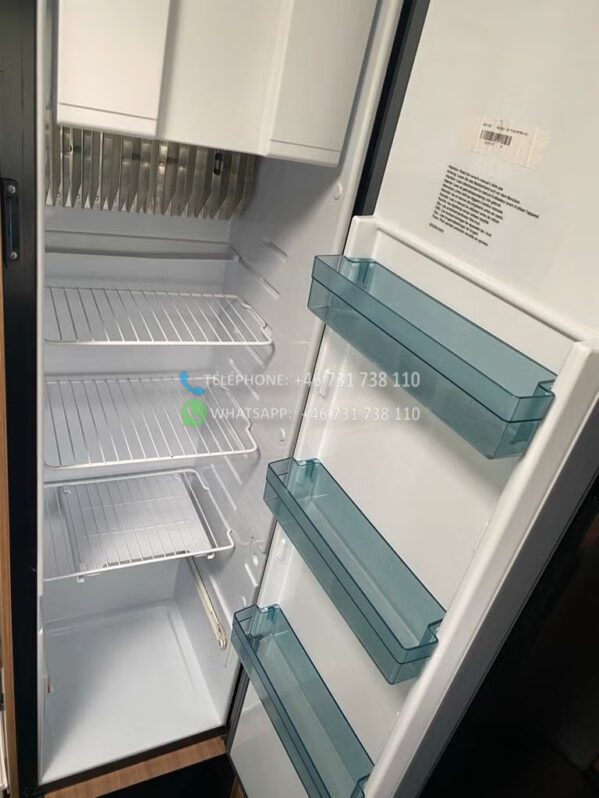 Coin cuisine avec de nombreux rangements dans les placards et les tiroirs. Réfrigérateur avec congélateur et four intégrés.