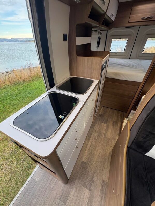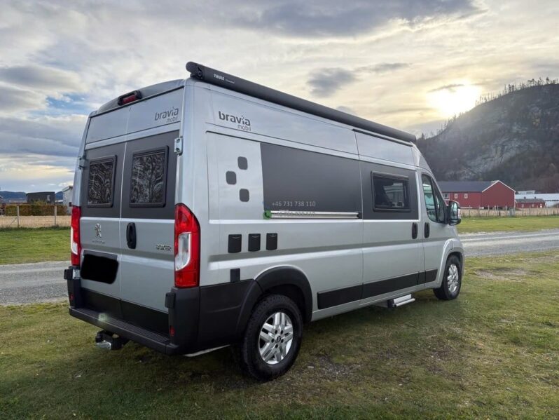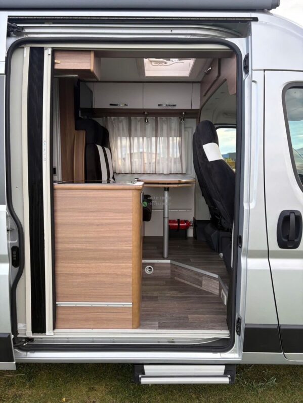 Superbe fourgon aménagé Bravia Swan 599 de 2021, modèle premium compact reconnu pour sa qualité de fabrication, son design moderne et son excellente optimisation de l’espace. Version 3 places carte grise / 3 couchages, motorisation 140 Ch en boîte manuelle, équipé panneaux solaires et chauffage Truma pour une autonomie complète.