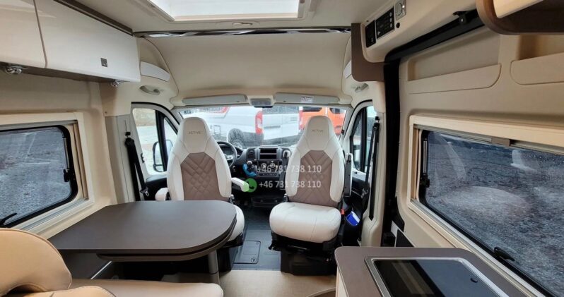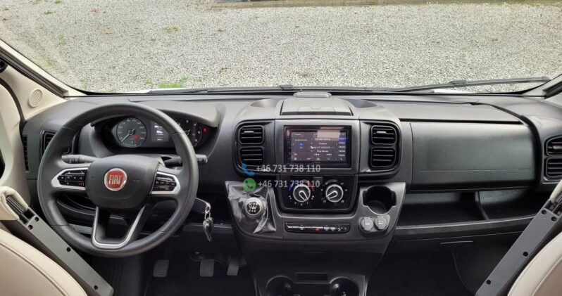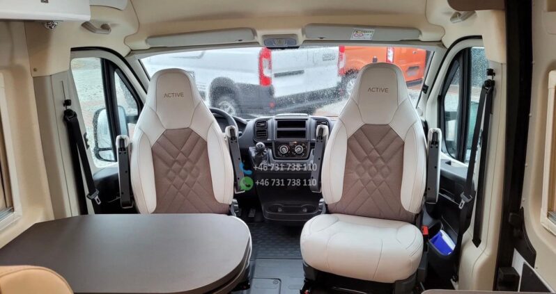 PACK ELISEO NORD 4 Repose-pieds à extension électrique Stores à cassette dans la cabine Auvent éclairé à l’entrée et gouttière Moustique sur la porte d’entrée Porte-serviettes pliable dans la salle de bain PACK ACTIVE Jantes aluminium 16″ Décoration extérieure spécifique Sièges matelassés Spoiler avant décoratif PACK FIAT ELISEO TECHNIC & DESIGN ESP avec Traction+ Rétroviseurs extérieurs à réglage électrique Volant multifonctions Volant et levier de vitesses gainés de cuir Pré-installation radio avec antenne et haut-parleurs Phares à contours noirs. Calandre noire EN SUPPLÉMENT : Store intégré pleine longueur THULE 6300 Porte-vélos extérieur PANNEAU DE COMMANDE ANDROID AUTO Toutes les fenêtres sont équipées de moustiquaires et de stores enrouleurs Moustique sur la porte d’entrée coulissante Rideaux REMIS intégrés dans la cabine du conducteur