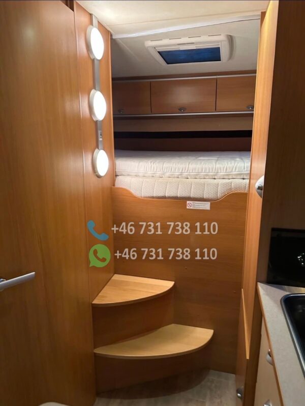 • Grand lit pavillon avant (électrique selon modèle), confortable et discret, libérant l’espace de vie.