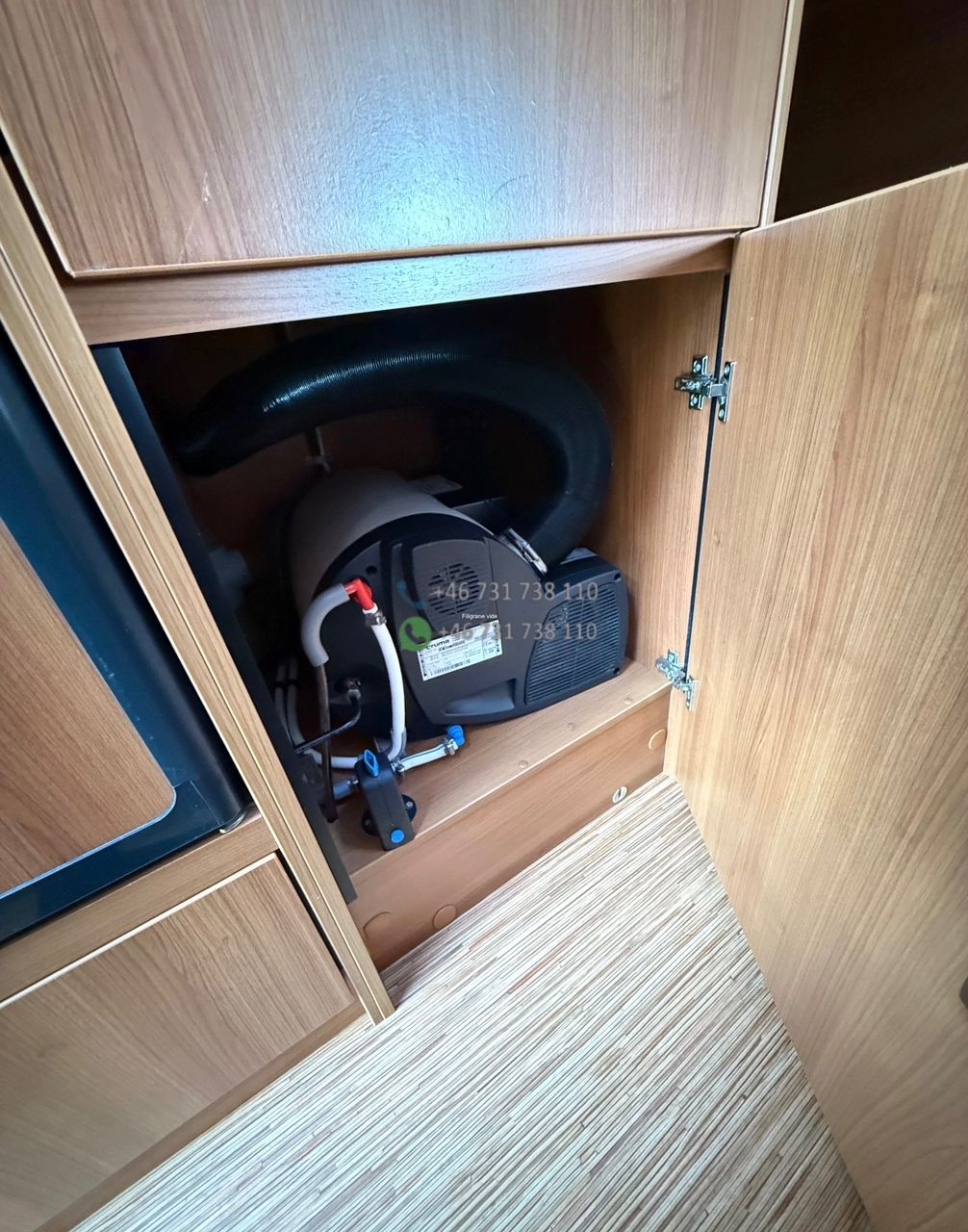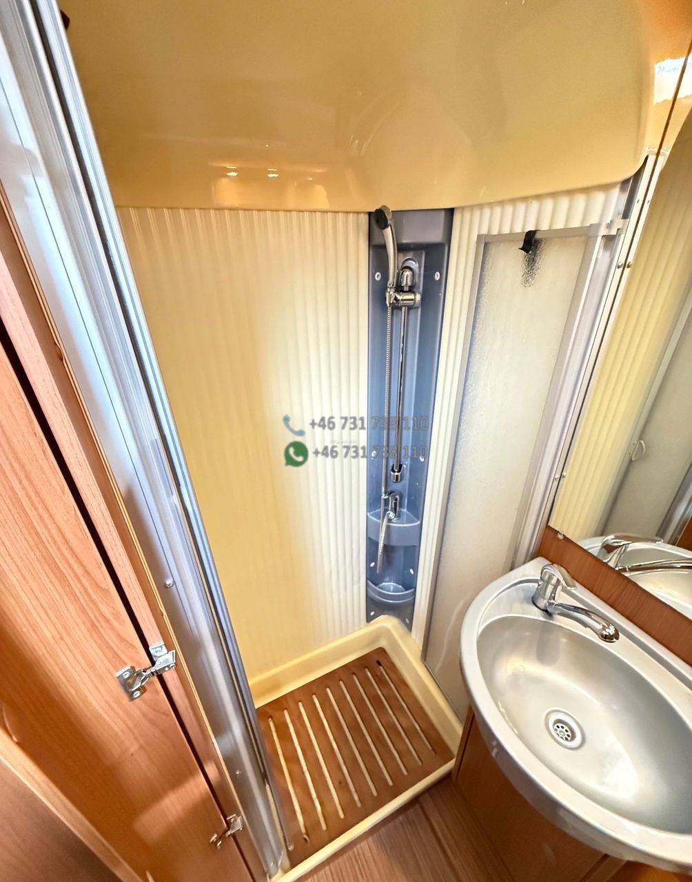 La toiture est équipée de panneaux solaires, idéals pour l’autonomie en stationnement libre. La largeur de 2,32 m et la longueur de 6,60 m permettent un bon compromis entre confort intérieur et maniabilité.