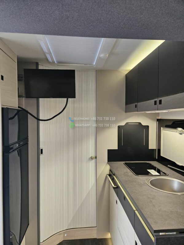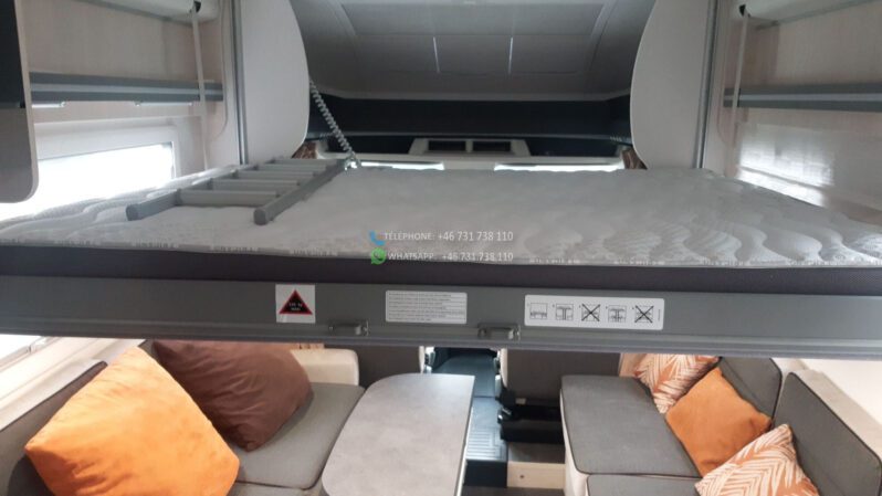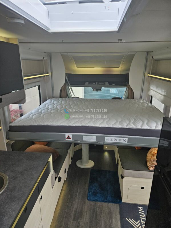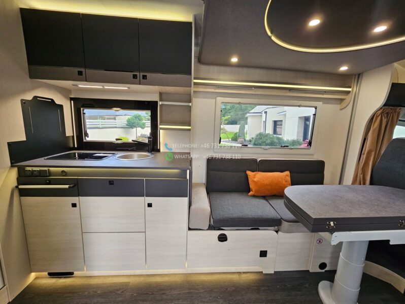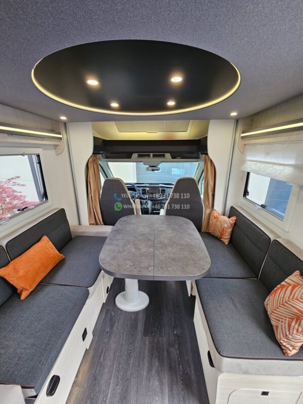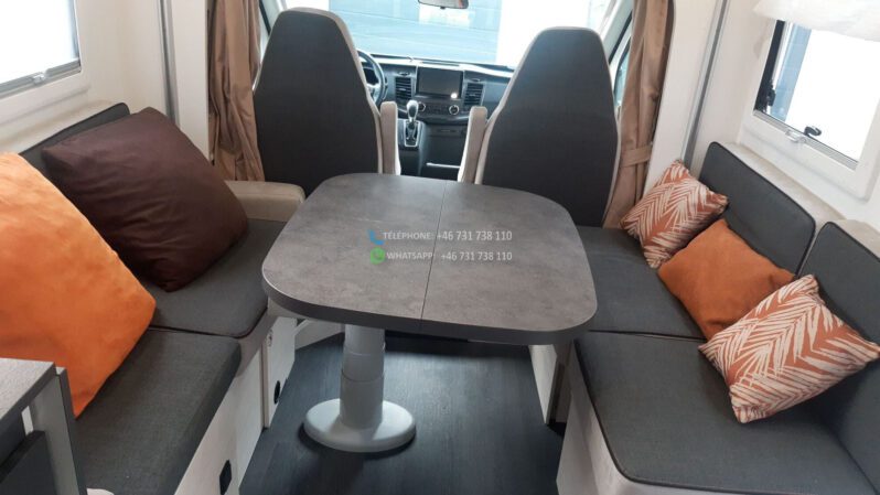 Le Challenger 260 Graphite Ultimat 2024 est un profilé compact de moins de 7 m offrant un grand confort grâce à son lit pavillon électrique 160 cm, son vaste salon face-à-face et sa salle d’eau avec douche séparée. Il est basé sur un Ford 170 ch. avec boîte automatique, climatisation cabine, aides à la conduite, GPS et compatibilité Apple Car Play. Très bien équipé pour l’autonomie, il dispose d’un panneau solaire, d’un grand réfrigérateur, d’un chauffage performant utilisable en roulant, d’un bon niveau d’isolation, d’une soute pratique (idéalement pour un porte vélo) et de nombreux rangements. Pensé pour voyager confortablement en couple ou en petite famille, il combine modernité, habitabilité, compacité et équipements premium pour un usage toute saison