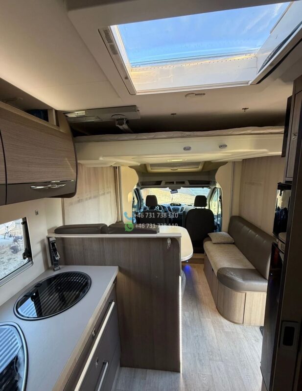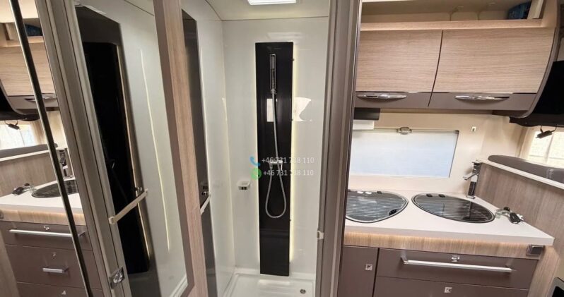 Le modèle 610 est l’un des plus appréciés : grand salon face-face, lit pavillon électrique, grande soute, cuisine spacieuse.
