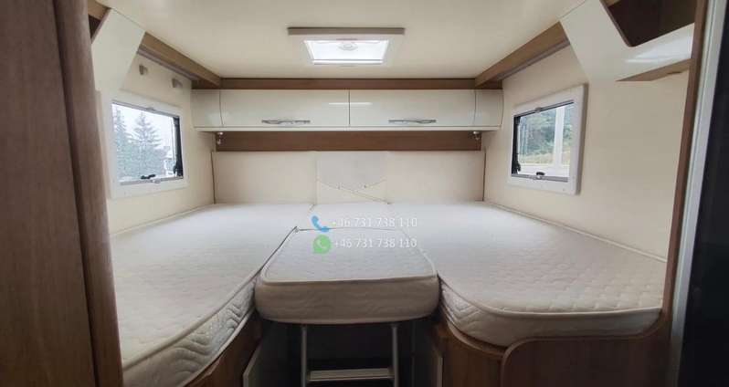 Lit arrière (souvent lits jumeaux ou un grand lit selon version) + lit rabattable électrique au-dessus de la salle à manger.