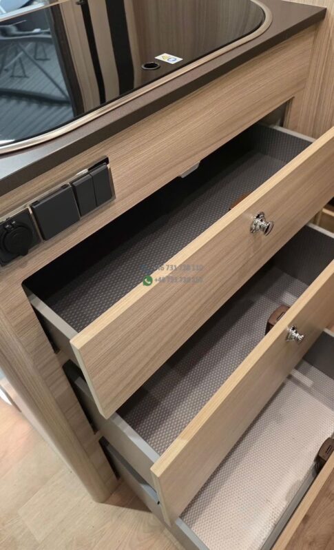 – Couchage supplémentaire via toit relevable ou banquette (selon configuration)