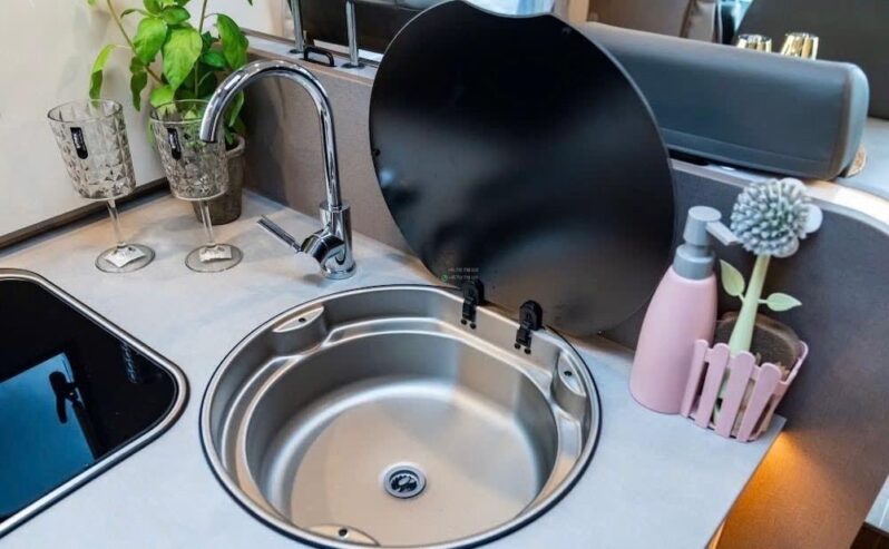– Évier inox avec mitigeur