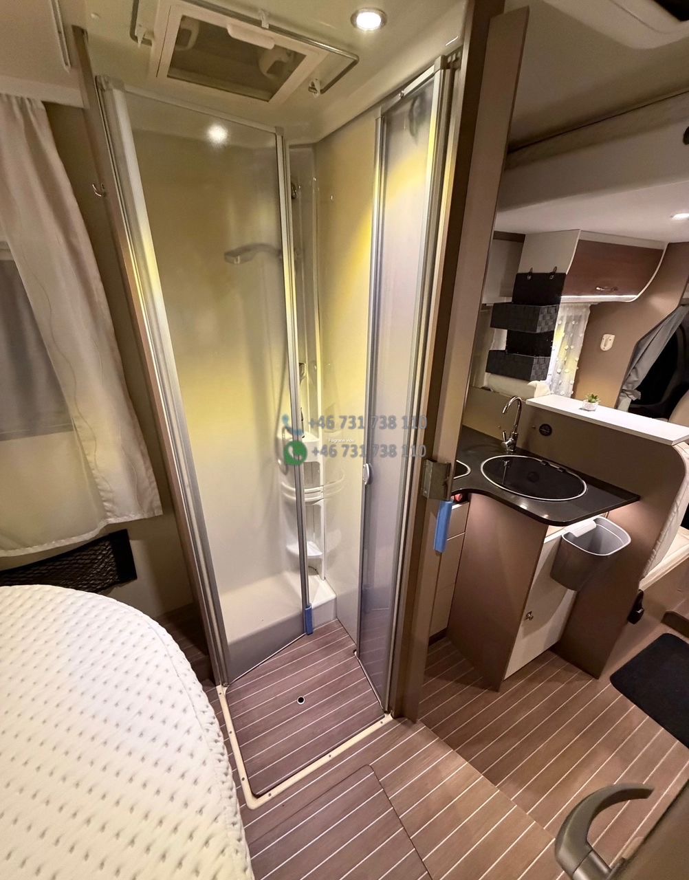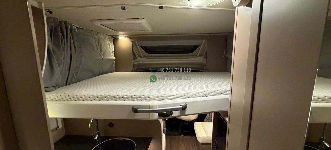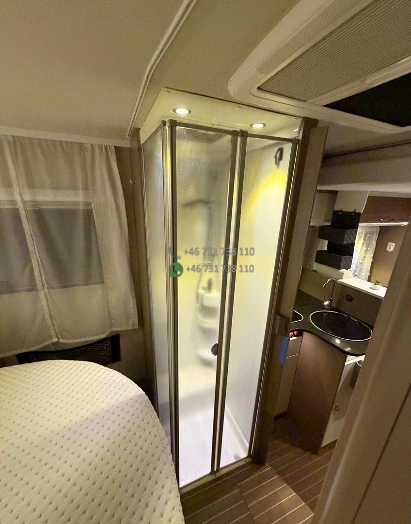Côté nuit : 2 couchages confortables, généralement avec lit permanent arrière (selon implantation), permettant de garder un espace de vie prêt à l’emploi sans transformation quotidienne. La salle d’eau est pratique, bien séparée et adaptée à une utilisation régulière.