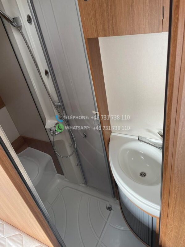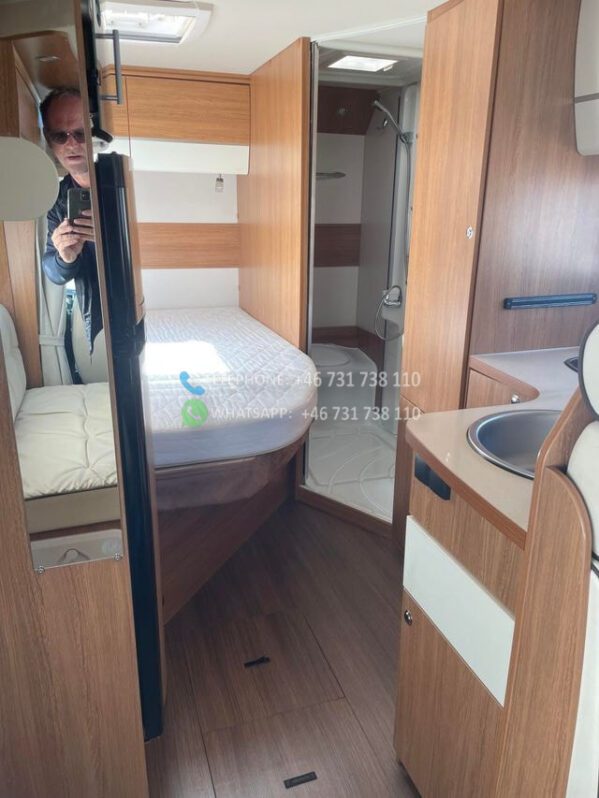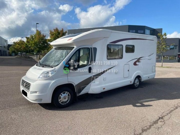 Avec un poids total de 3 500 kg, ce véhicule peut être conduit avec un permis de conduire de classe B. Le poids à vide est de 2 950 kg, ce qui signifie que vous disposez de 550 kg de charge utile pour les vélos, un gril et d’autres équipements que vous devez emporter. L’Eura Mobil PT 670 SB est doté d’une transmission manuelle et d’une traction avant et a parcouru 78 000 km. Le camping-car mesure 699 cm de long et 232 cm de large.