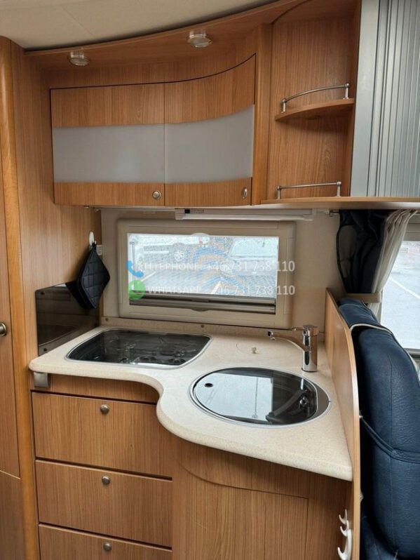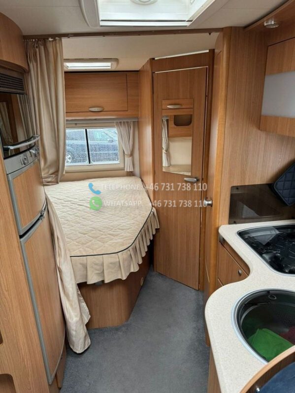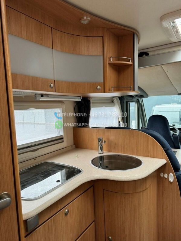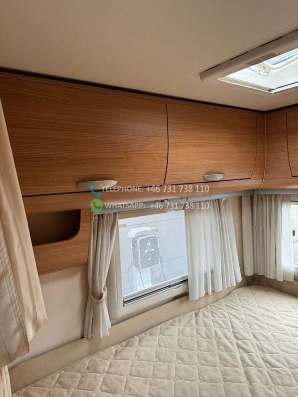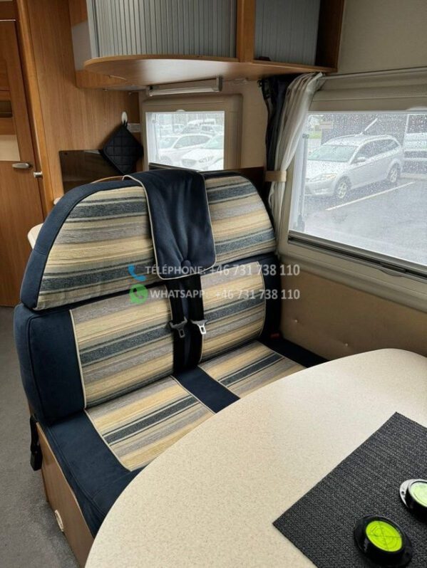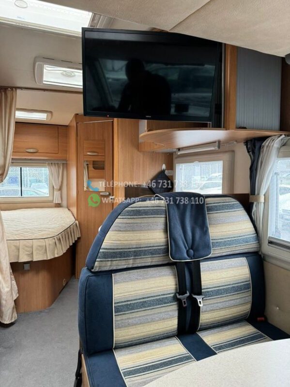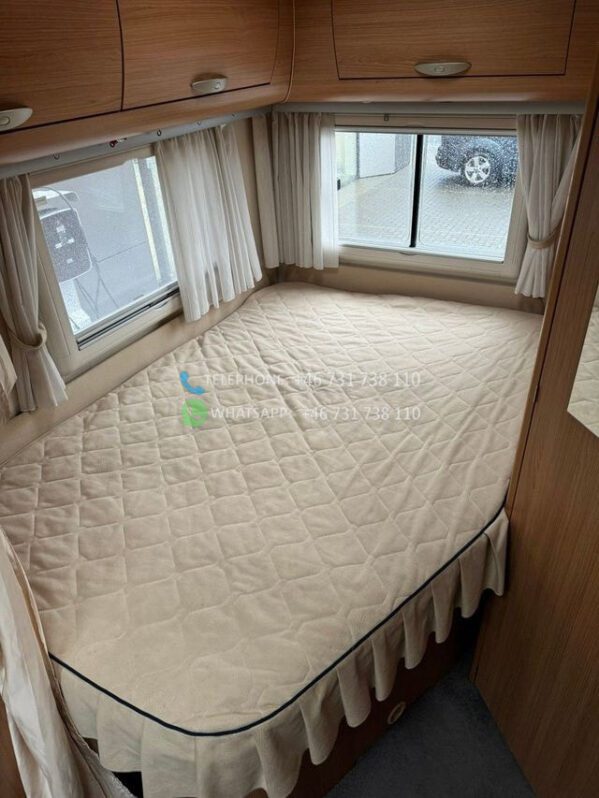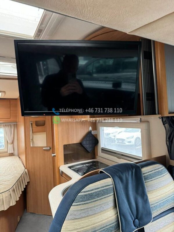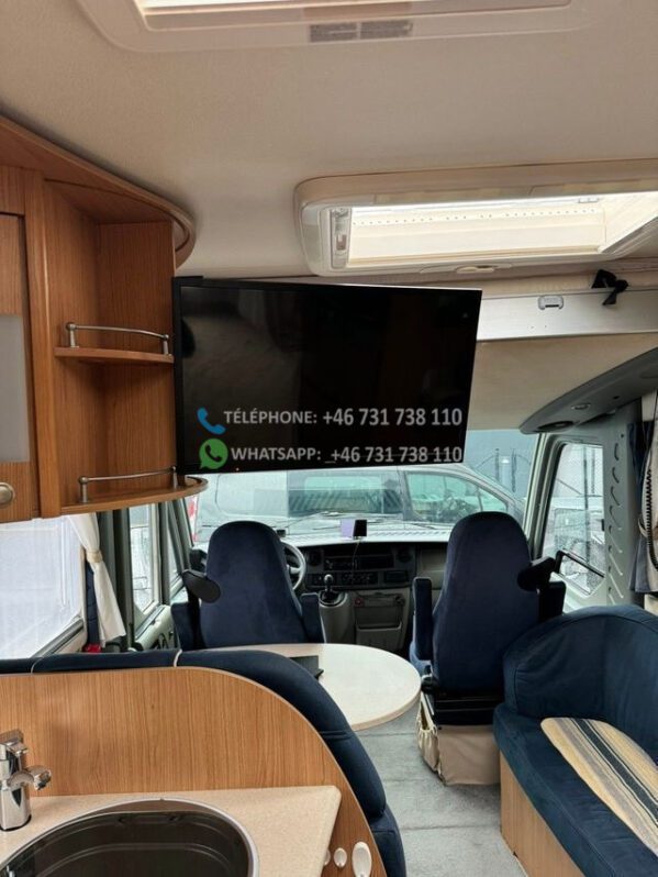 Voiture très bien entretenue et agréable à vendre. Cette voiture a un aménagement agréable et pratique et peut être conduite avec un permis de conduire B ordinaire. Elle dispose d’un grand salon avec des chaises réversibles, d’une grande cuisine avec four et d’un réfrigérateur avec congélateur. De plus, il y a un lit double rabattable électriquement, une télévision connectée, un auvent avec store/tapis, un chauffage au sol Webasto.