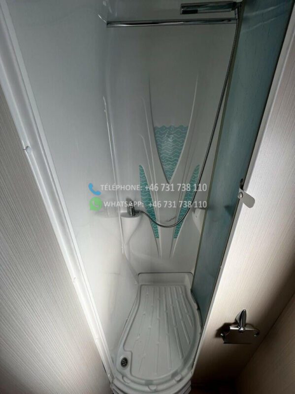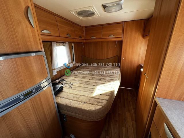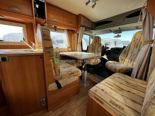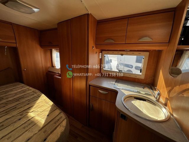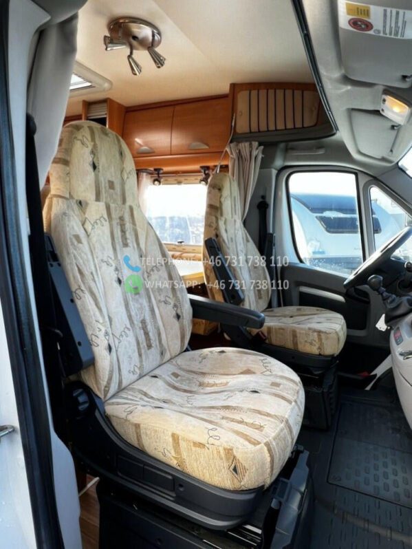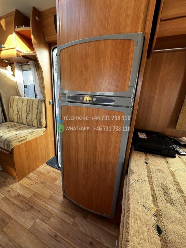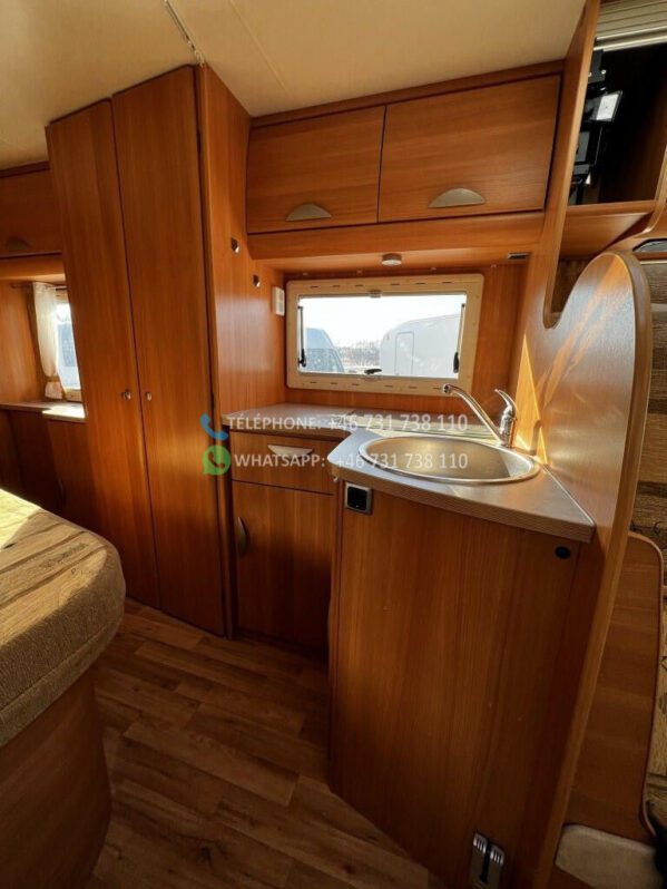 Avec un poids total de 3 500 kg, il peut rouler avec un certificat de classe B. Le poids net est de 2 960 kg, ce qui signifie que vous disposez d’une charge utile de 540 kg pour les vélos, le barbecue et autres équipements que vous devez emporter avec vous. Le Challenger MAGEO 116 est équipé d’une transmission manuelle et d’une traction avant et a parcouru 70 000 km. Le camping-car mesure 733 cm de long et 230 cm de large.
