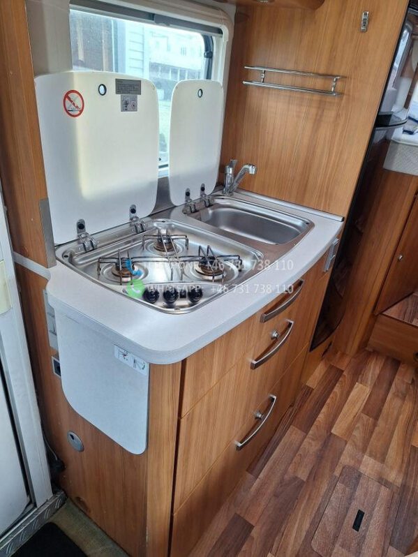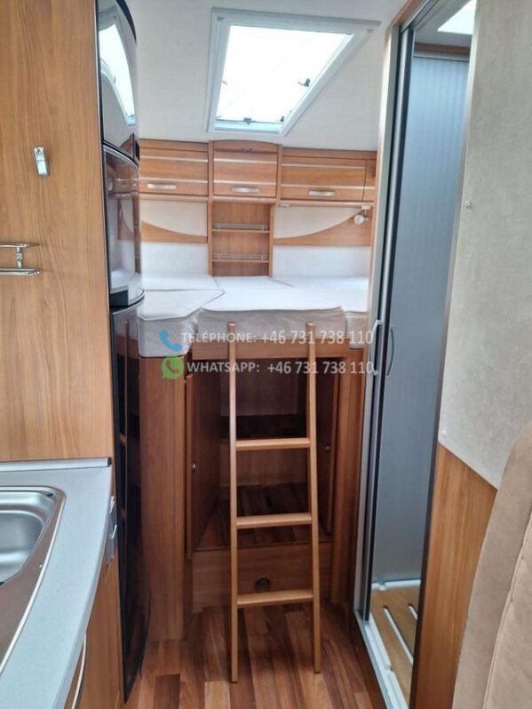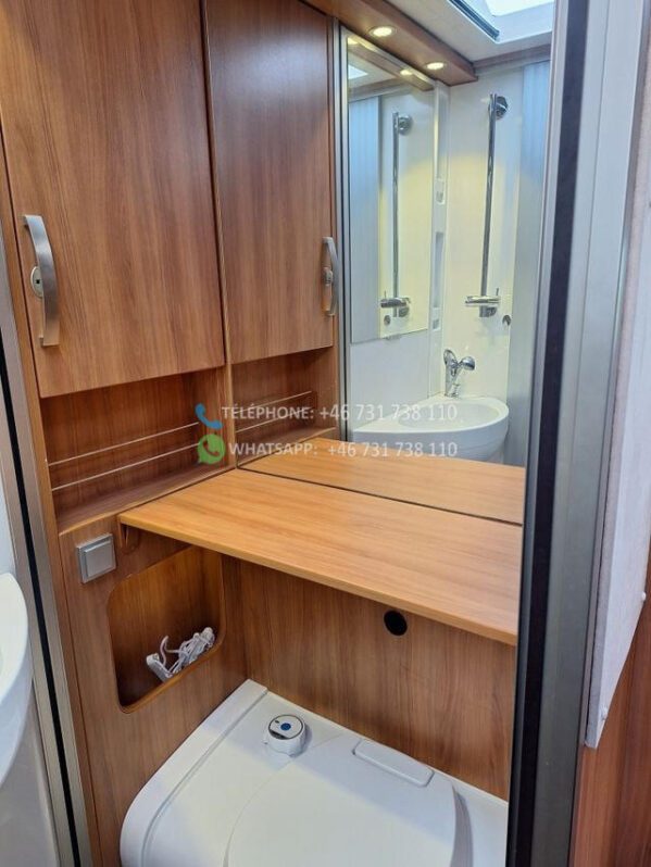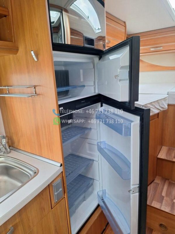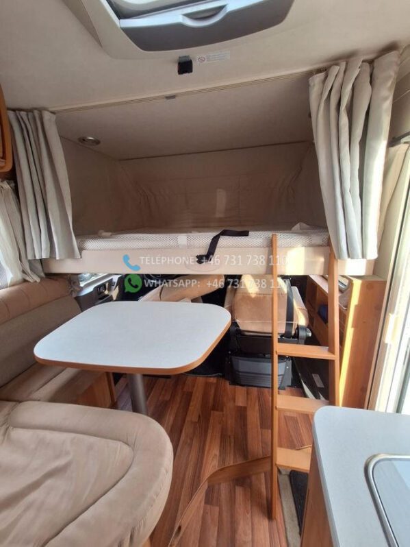 Le camping-car est équipé d’un auvent, et en plus, un rail a été installé sous l’auvent pour un auvent.