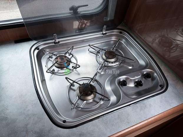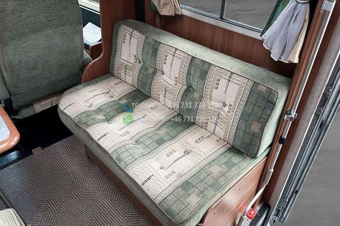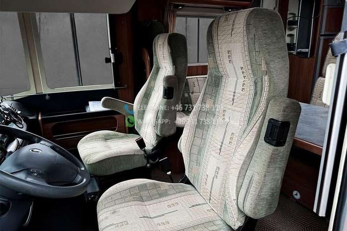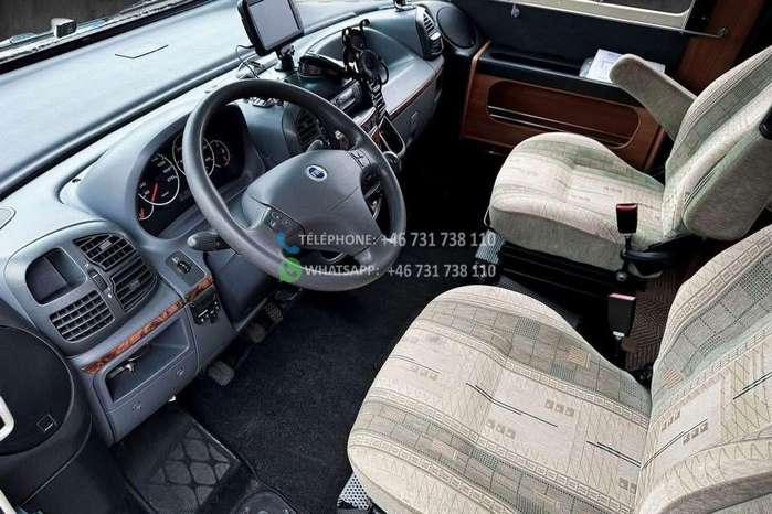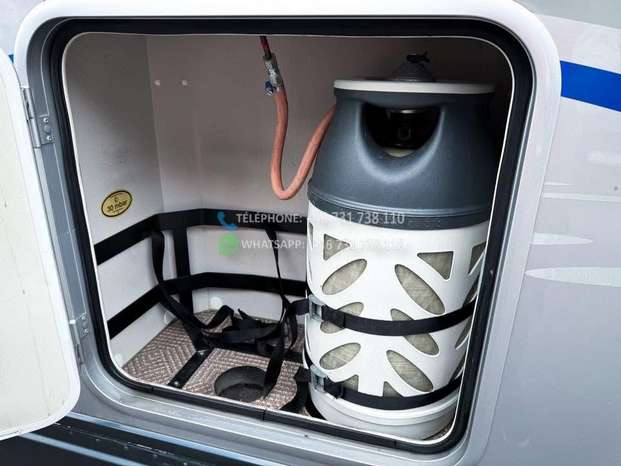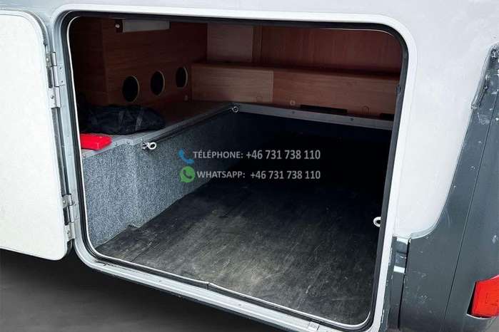 Échelle – Télévision – Réfrigérateur/congélateur – Lit double côte à côte et lit escamotable devant le coin salon – Salle de bain compacte avec douche et WC – Enregistré comme 4 places avec 6 couchages !