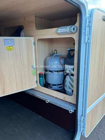 Il y a 2 batteries de 200 Ah dans le logement, ce qui permet de faire du camping libre sur plusieurs jours.