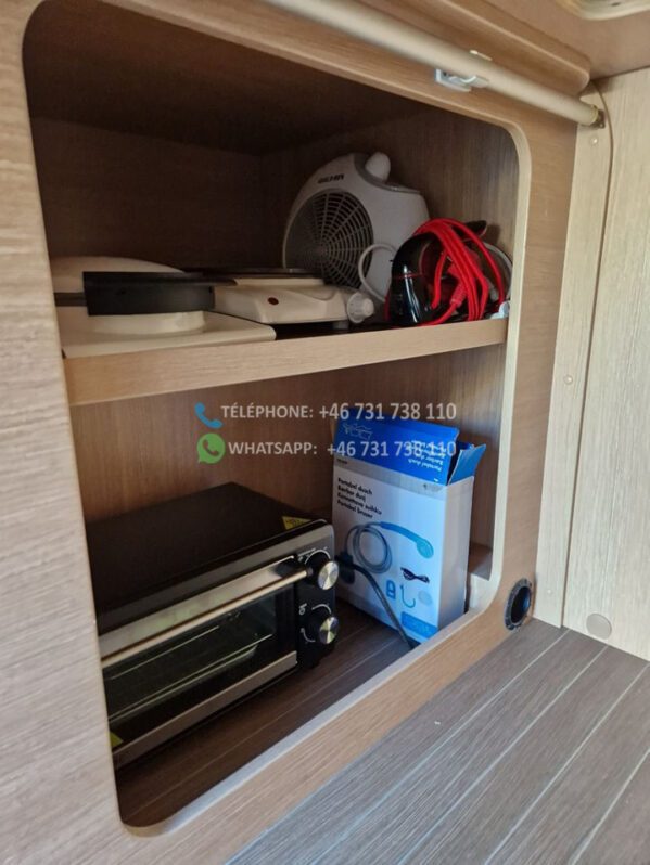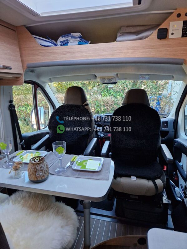 La voiture est livrée avec une tente, 2 chaises longues, une table, une couverture, un four, un grill et un gaufrier pour la tente,