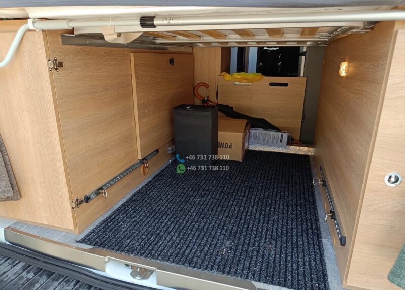 Ce fourgon aménagé haut de gamme de 5,99 m combine maniabilité, modernité et confort. Il reprend un agencement très apprécié : lits jumeaux arrière, grand salon, cuisine équipée et salle d’eau modulable.