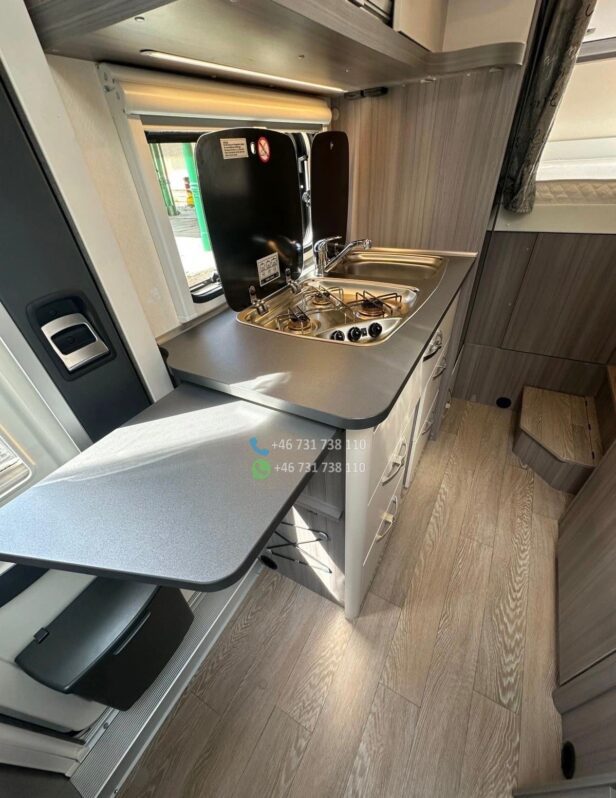 Modèle compact (≈ 6,8 m) mais très complet, idéal voyages en couple ou en famille.