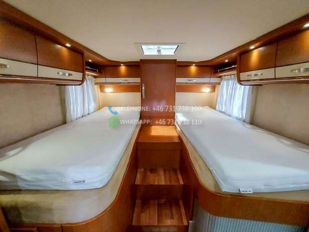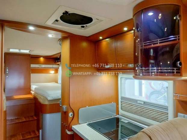 Hymer B 678 Norway Line entièrement intégré avec moteur de 3,0 litres et boîte de vitesses manuelle. Cette voiture est équipée d’un chauffage central à eau Alde et d’un échangeur de chaleur. Deux lits simples à l’arrière de la voiture et un lit pavillon à l’avant. Un garage spacieux vous permet d’emporter avec vous le matériel dont vous avez besoin. Salle de douche et toilettes séparées, réfrigérateur/congélateur séparé et four au dessus. Deux panneaux solaires sur le toit, caméra de recul, store électrique et pieds de support, cintre etc.