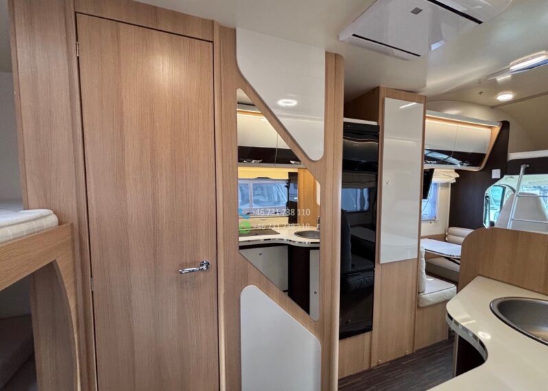 Le McLouis Glamys 222 Discovery est l’un des modèles familiaux les plus recherchés du marché. Grâce à sa capucine spacieuse et sa configuration à 7 places carte grise, il permet de voyager en famille nombreuse dans un confort optimal. Ce modèle 2021, sur Fiat Ducato 2.3 Multijet 140 ch, combine puissance, faible consommation, et équipements modernes pour de longs voyages.