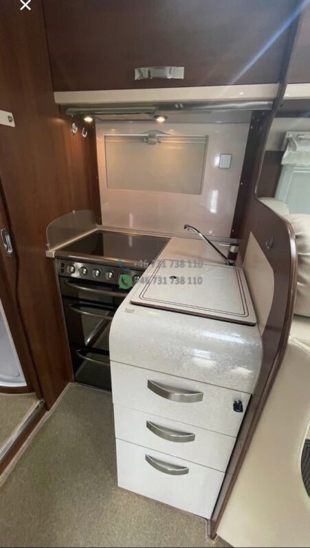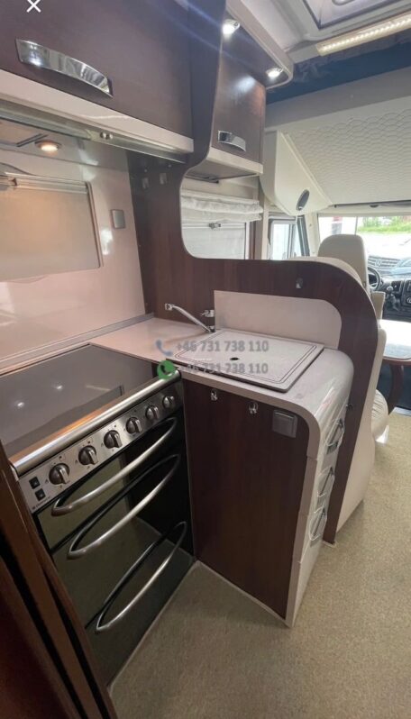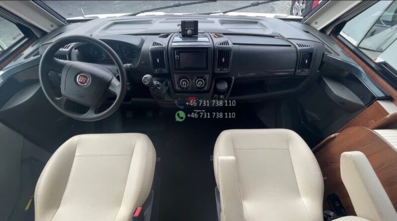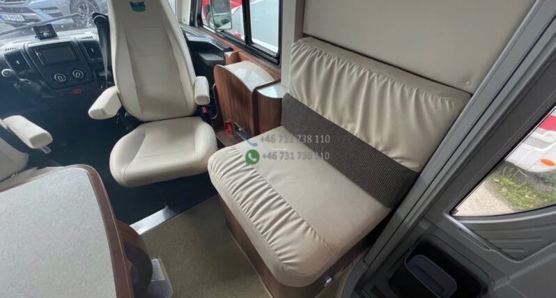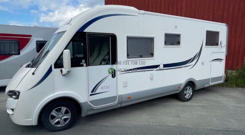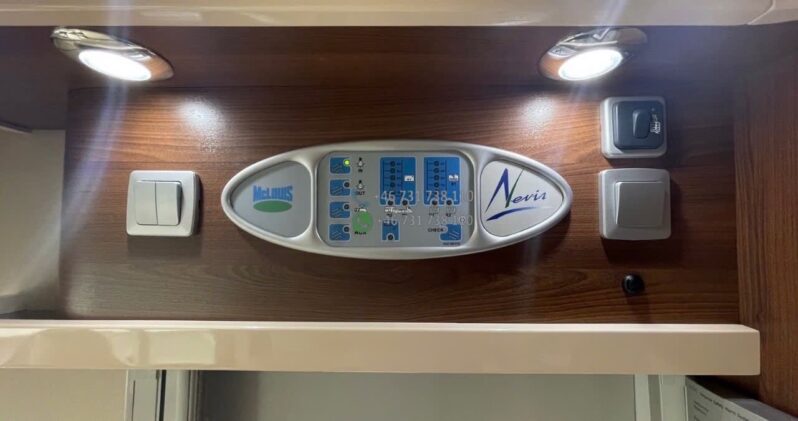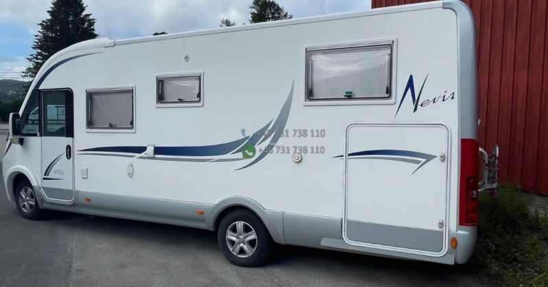 Camping-car intégral au design élégant avec face avant panoramique typique de la gamme Nevis. Bonne isolation de cellule et construction adaptée aux voyages multi-saisons.