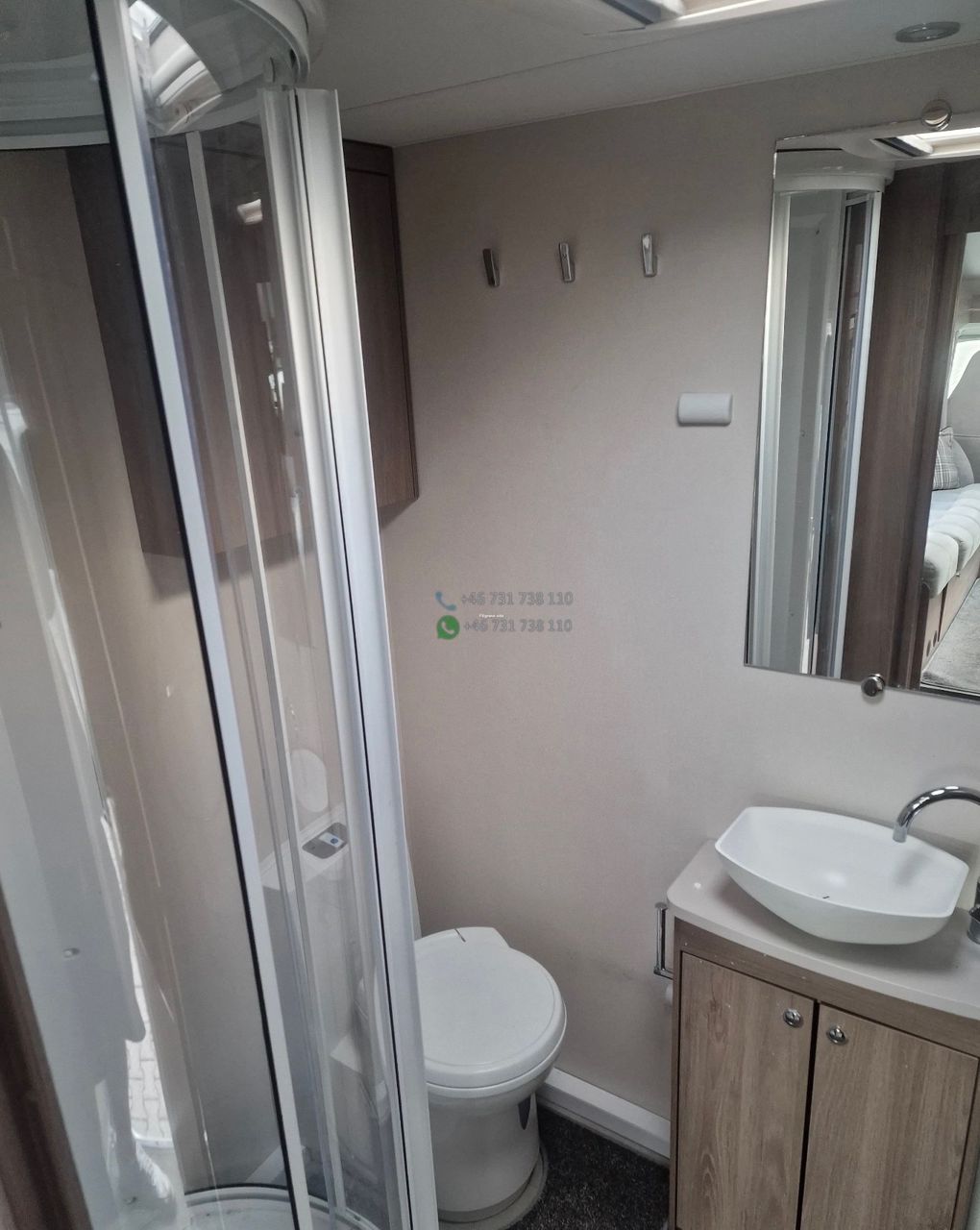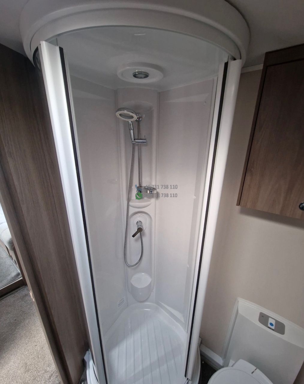 La salle d’eau compacte assure un bon niveau de confort avec douche et WC.