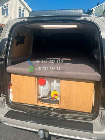 Coffre de camping avec lit amovible, permettant d’utiliser la voiture comme fourgonnette.