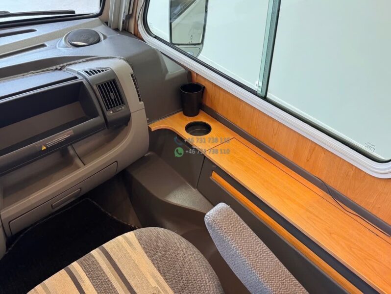 Format intégral compact (6,63 m) facilitant la prise en main et le stationnement tout en conservant un bon niveau d’habitabilité. Toit équipé de panneaux solaires pour améliorer l’autonomie en stationnement libre. Multiples ouvrants pour la lumière naturelle et la ventilation.