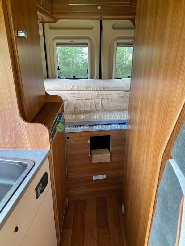 La chambre est située à l’arrière du camping-car, décorée avec de belles couleurs modernes. Pneus d’hiver usés environ 200 milles. Feux de croisement PIAA LED 70 Watt pour que la nuit ne vienne pas lorsque la barre LED est tamisée.