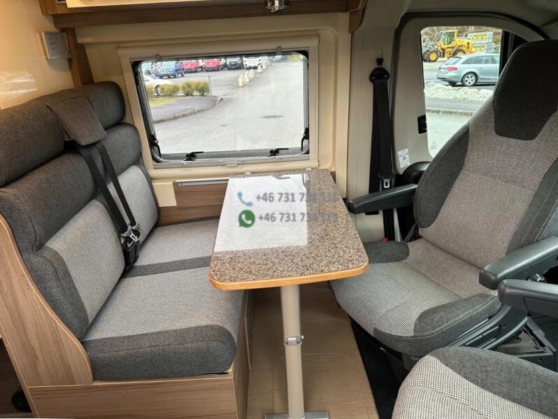 L’intérieur du Rapido Dreamer est optimisé pour offrir un maximum de confort dans un format compact. La cabine s’ouvre sur un espace salon convivial avec sièges pivotants et table centrale, permettant de créer un vrai coin repas lumineux grâce aux nombreuses ouvertures.