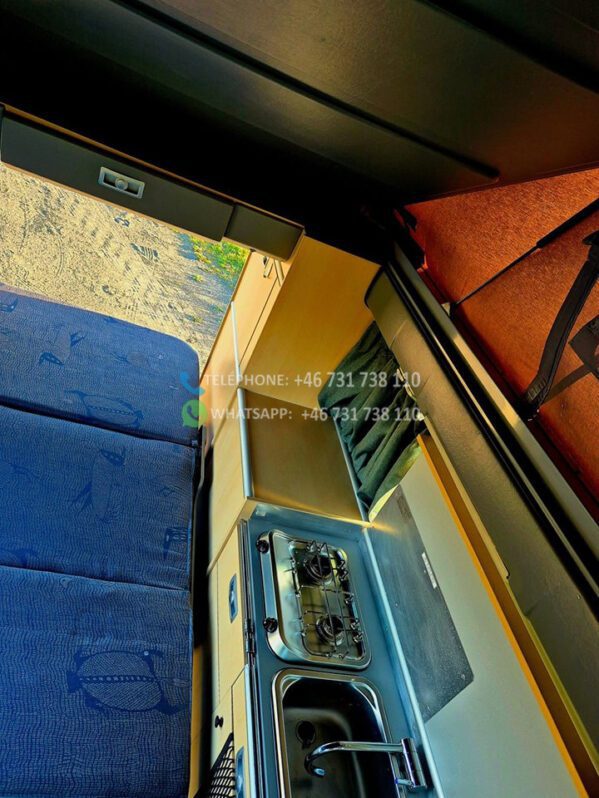 Le camping-car mesure moins de 5 mètres, ce qui permet de réduire les coûts de ferry et de péage. Il est facile de conduire avec un permis de conduire de classe B ordinaire. Le camping-car dispose de :