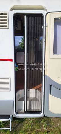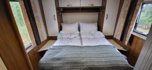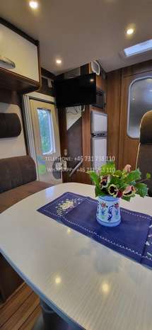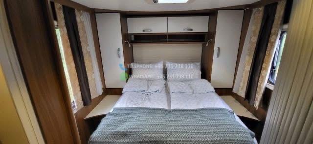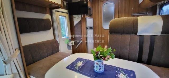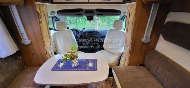 Bien maintenu. Elle dispose de quatre couchages, un lit queen, un lit escamotable pouvant accueillir 2 personnes. WC et douche séparés. Porte vers la chambre. Four, grand réfrigérateur. Pneus d’hiver, grand auvent. Cette voiture a une chaîne de distribution. Radio et télévision DAB. Antenne de toit. Le stockage hivernal a été effectué à l’intérieur. Grand coffre à bagages avec deux trappes. Deux bouteilles de gaz.
