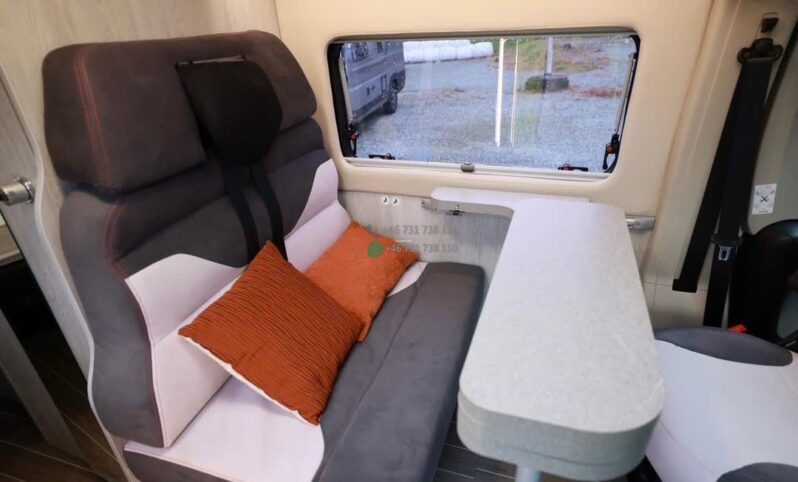 À l’arrière, le couchage principal offre un lit double confortable. La dinette se transforme en couchage complémentaire pour atteindre 4 couchages, idéal pour une petite famille ou l’accueil ponctuel d’invités.