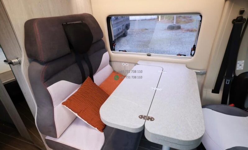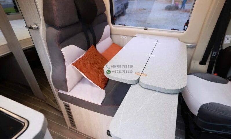 L’intérieur du Livingstone 2 Advance est conçu pour maximiser l’espace dans un format compact. Le salon avant est lumineux et convivial avec sièges pivotants et table centrale, permettant de manger à quatre confortablement.