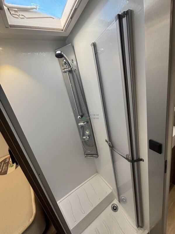 La salle d’eau indépendante comprend douche, WC et lavabo, offrant un excellent confort à bord.