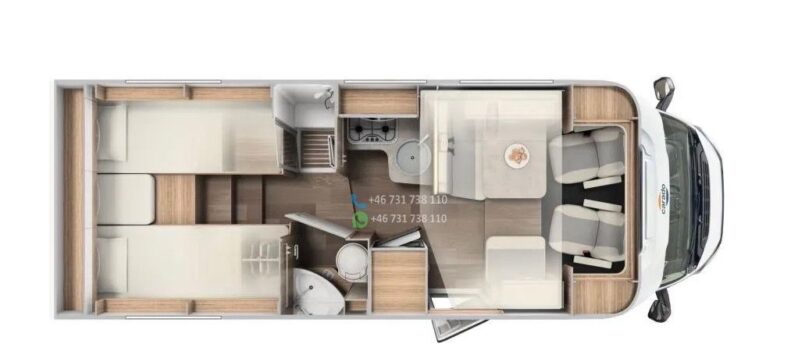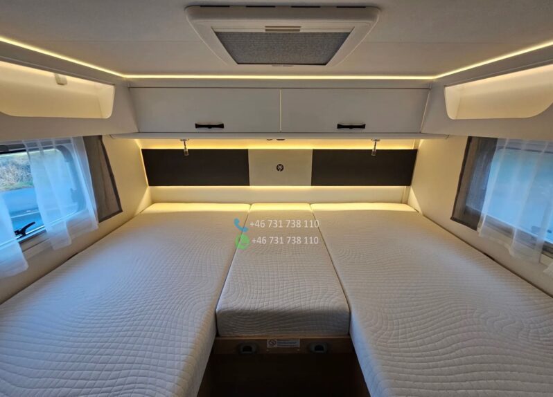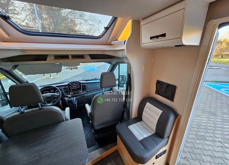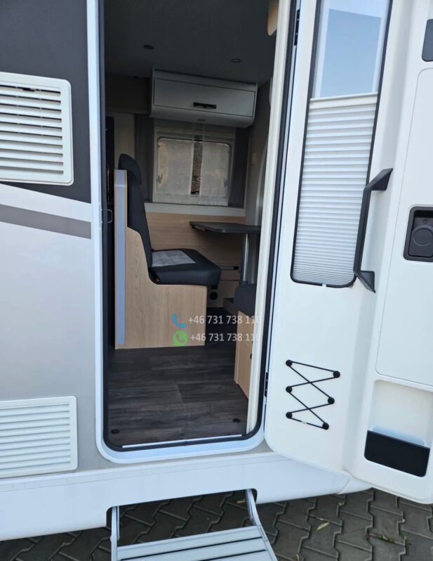 En résumé, cette caravane prête pour l’hiver est en parfait état, sans accident ni dommage, très bien équipée et proposée à un prix très avantageux ! Quelles sont les caractéristiques de la T680 Adventure ? ✅ Chambre verrouillable, ✅ Toilettes et douche séparées, ✅ Lit d’appoint pour 2 personnes, ✅ Climatisation Truma Combi 6 ✅ Climatisation ✅ Commandes électroniques Truma Control ✅ Commande Truma Mono (permet d’utiliser des appareils à gaz en toute sécurité en conduisant), ✅ Téléviseur intelligent Android, ✅ Porte d’entrée de 70 cm, ✅ Toit et arrière de la caravane en PRV pour une protection optimale contre la grêle (et un poids à vide réduit), ✅ Sellerie cuir partielle (pack confort en option), ✅ Deux batteries AGM de 95 Ah ✅ Caméra de recul + grand écran multimédia xZen ✅ Ressorts arrière en fibre de verre (pour un poids à vide réduit), ✅ Contrôle et localisation du véhicule à distance via FordPass ✅ Version hiver : réservoir d’eaux grises isolé, fenêtres à double vitrage et puissant groupe électrogène TrumaCombi 6 ✅ Panneau solaire de 180 W ✅ Contrôle de niveau Truma (régulation du niveau de gaz dans la bouteille) ✅ Alarme TriGas