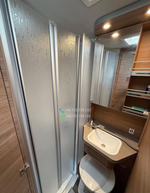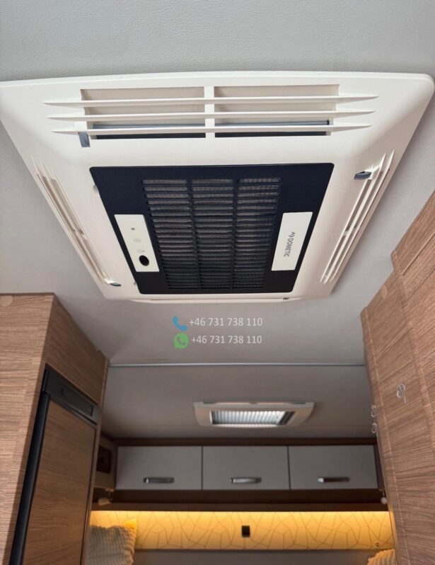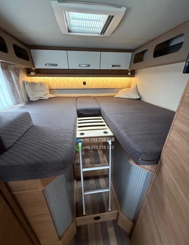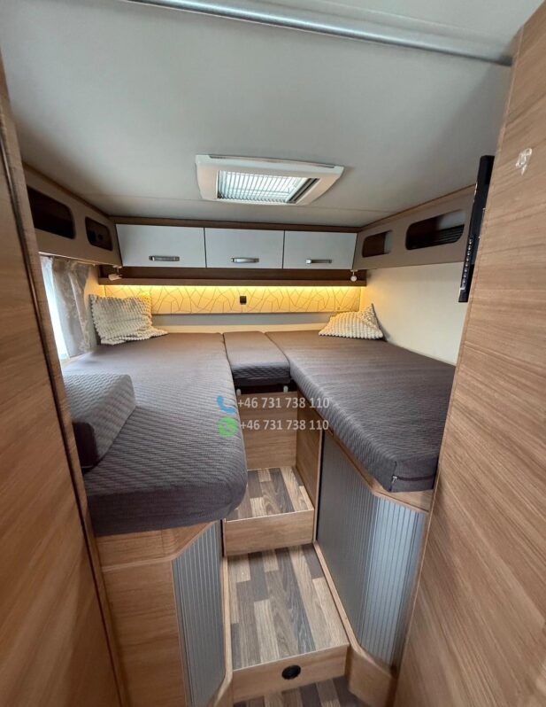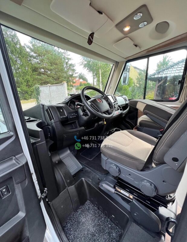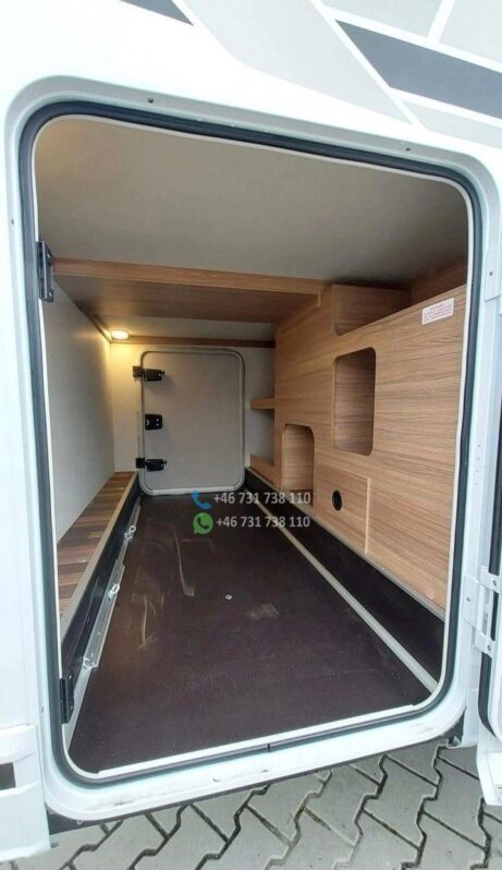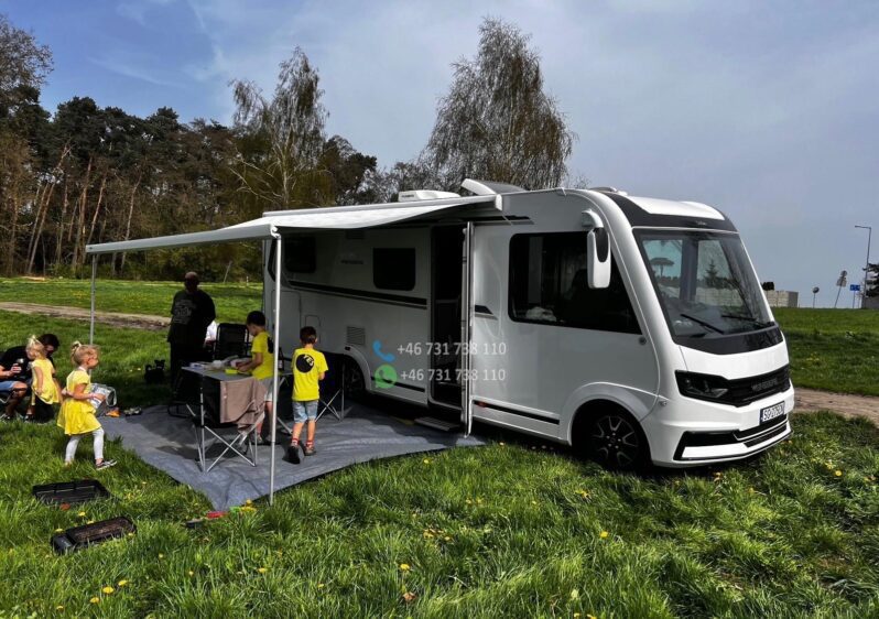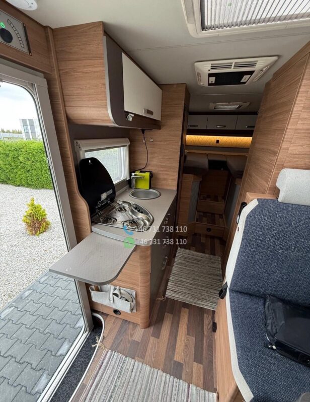 Version la plus puissante de 170 ch – Boîte de vitesses automatique à 9 rapports – Climatisation de toit Dometic avec télécommande – Système Pioneer avec affichage tête haute, caisson de basses et haut-parleurs intégrés à la cuisine, compatible Apple CarPlay/Android Auto – Caméra de recul – Système de chauffage Truma iNet avec commande par smartphone – Antenne satellite automatique – Écrans TV avant et arrière – Stores enrouleurs Thule Omnistore de 4,5 m – Feux de jour et phares bi-xénon – Jantes alliage 16 pouces – Marchepied électrique Thule – Porte-vélos Thule compatible avec les vélos électriques (lourds), rabattable pour faciliter le chargement – Régulateur de vitesse – Commandes radio au volant Options : – Bouteille de gaz composite rechargeable dans les stations-service de toute l’Europe (adaptateurs) – Batterie embarquée 120 Ah – Entretien complet effectué